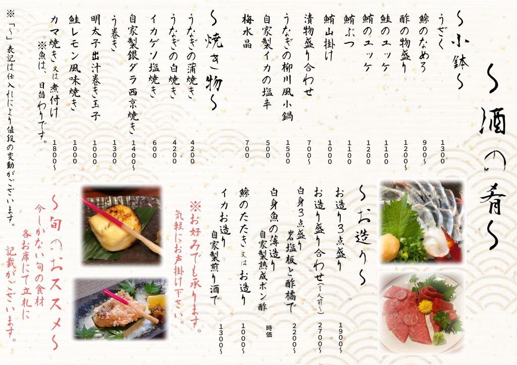 仕入れにより変動がありますが、日替わり週替わりで旬のおススメ品を取り揃えております。